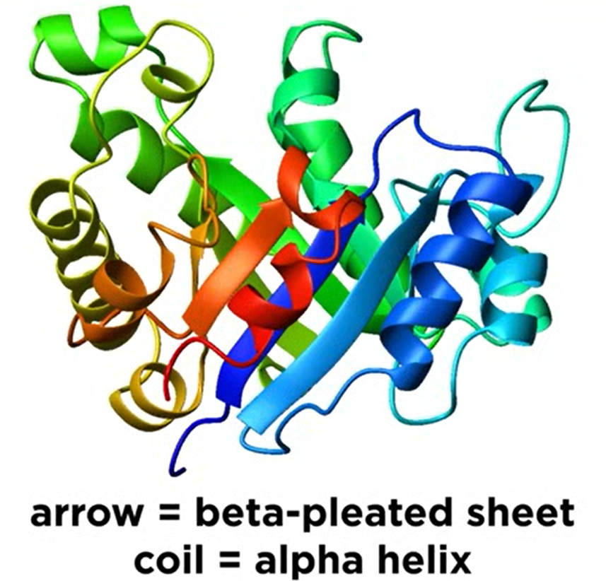- Secondary Structure: Localized conformations of the polypeptide backbone to minimize the net electrostatic potential and hydrogen bond potential.