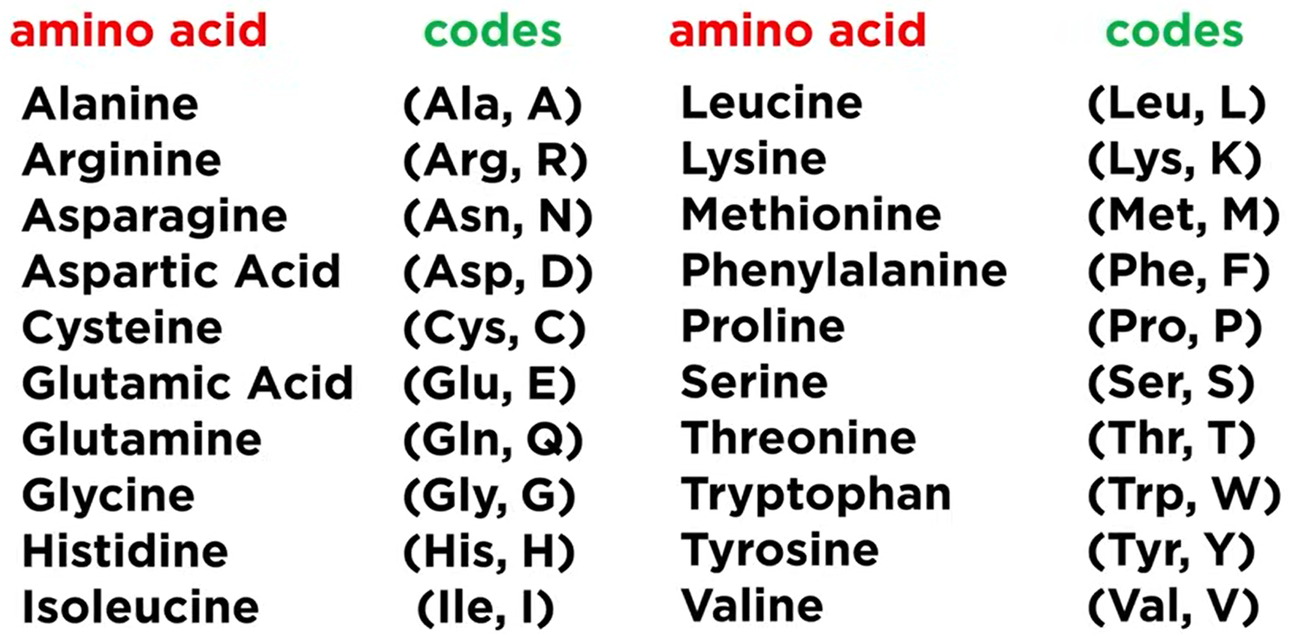 - Sets of abbreviations of amino acids in both three-letter-notation and one-letter-notation