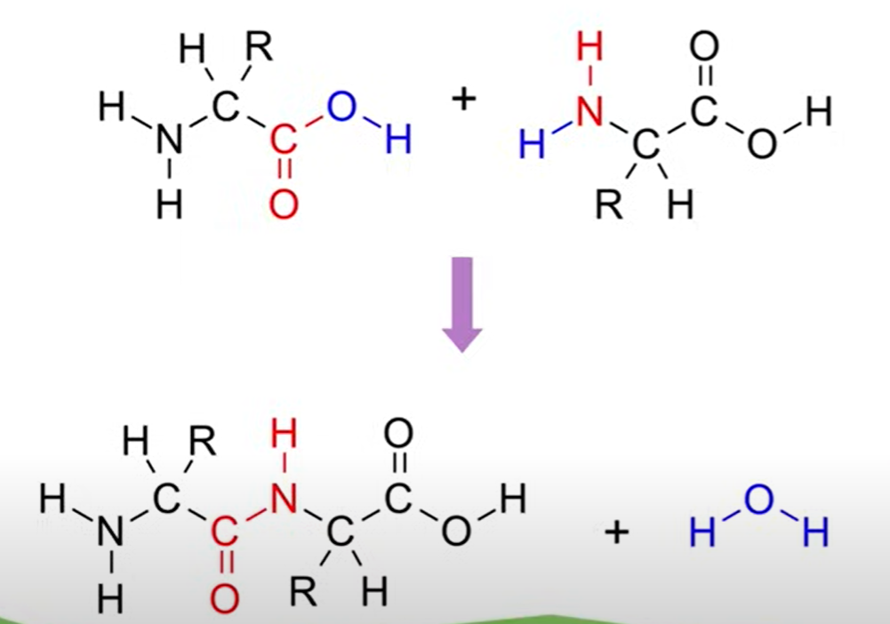 - Example: Two glycine units form a peptide bond, losing a water molecule in the process.